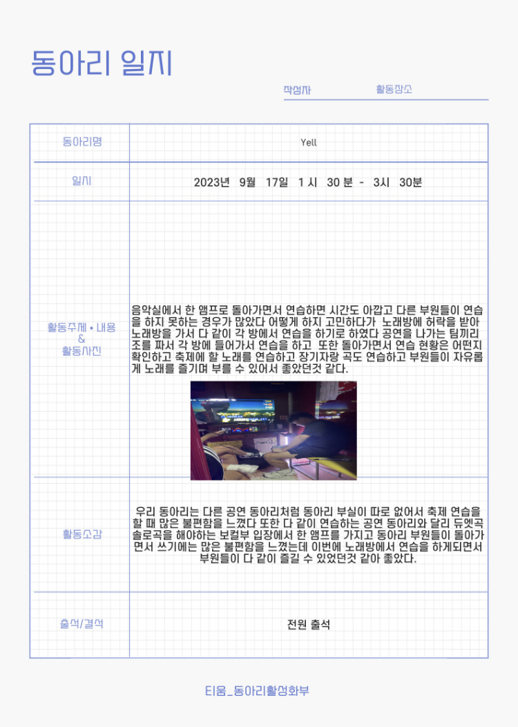 Yell 동아리 9월 13일 활동 결과