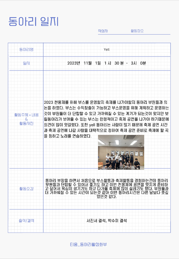 Yell 동아리 11/1 활동 결과